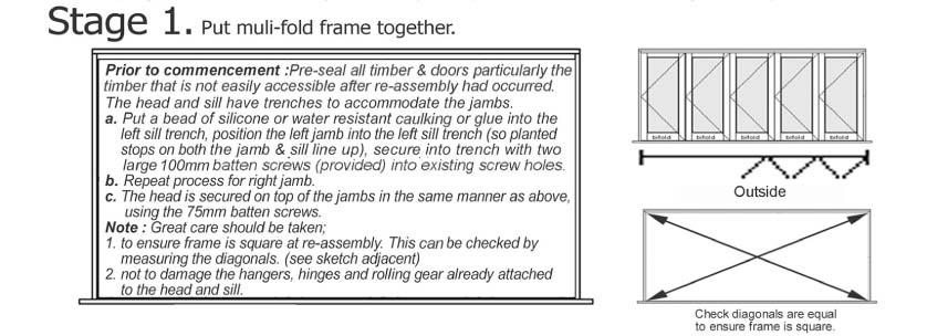 These processes apply to the re-assembly of all "flat packed" Woodworkers multi-fold door or window systems.